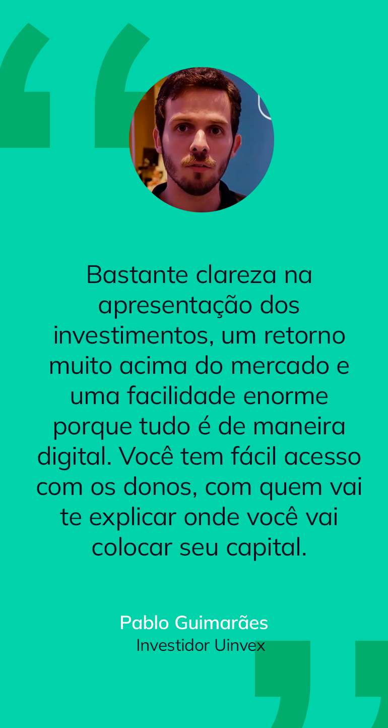Na Uinvex, buscamos bons retornos, segurança e transparência. Nossa plataforma é regulada e certificada pela CVM, que fiscaliza o mercado financeiro no Brasil.